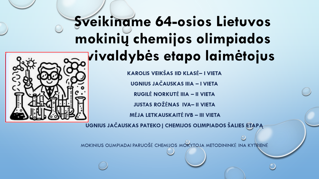 Sveikiname 64-osios Lietuvos mokinių chemijos olimpiados savivaldybės etapo laimėtojus