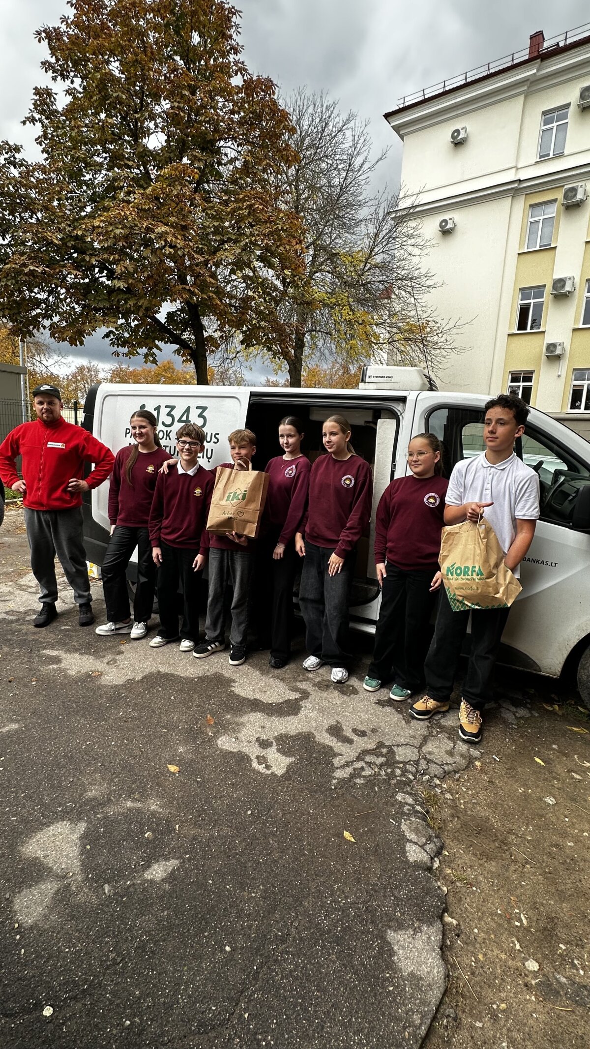 4a ir 4b klasės mokiniai akcijos "Rudens kraitelė 2025" dal...