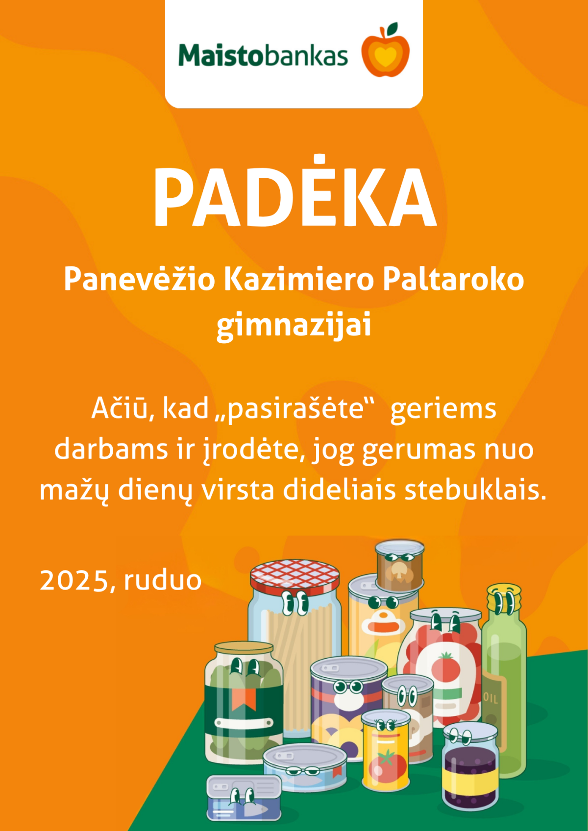 Panevėžio Kazimiero Paltaroko gimnazija nuoširdžiai dėkoja Gabrielės Petkevičait... -