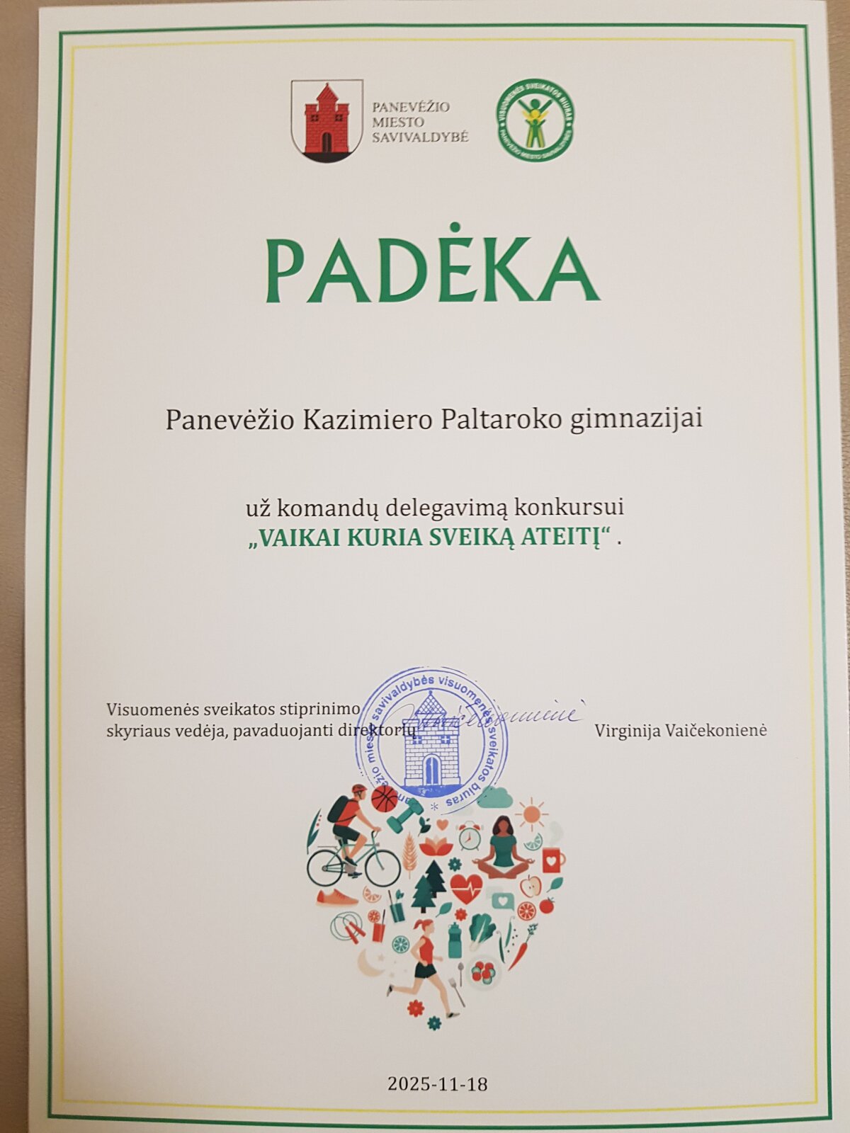Lapkričio 18 d. Panevėžio miesto savivaldybės salėje vyko Visuomenės sveikatos biuro organizuotas projektų konkursas „Vaikai kuria sveiką ateitį“. Šis konkursas skatino moksleivius gilintis į sveikatos temas ir siūlyti kūrybiškus sprendimus.