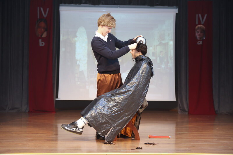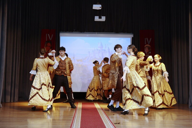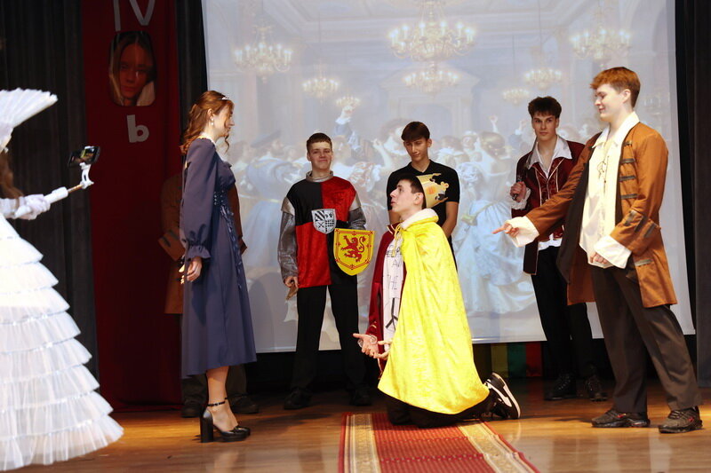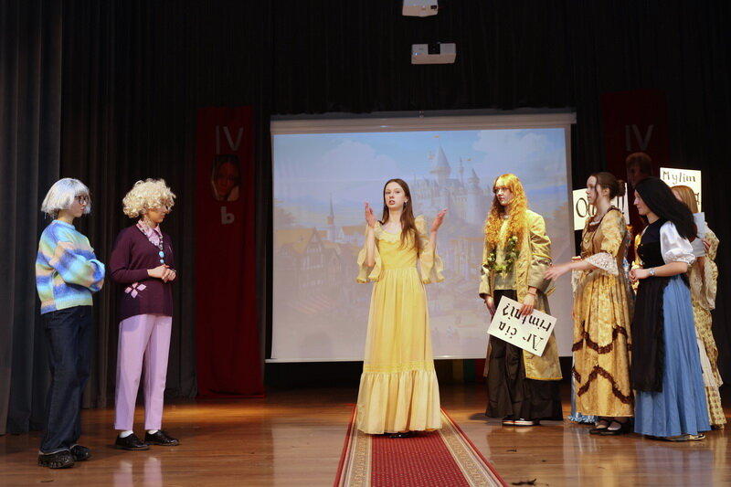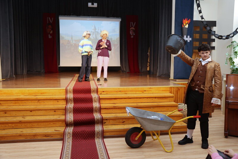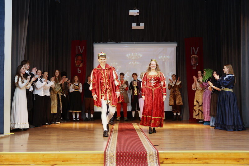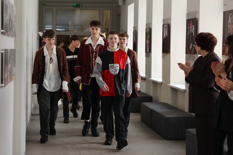 Šimtadienio renginyje dvyliktokai ne tik stebėjo vienuoliktokų paruoštą programą, bet ir patys tapo pagrindiniais istorinių pasakojimų herojais. Klasės pristatė kūrybiškas garsių Viduramžių kūrinių interpretacijas, kuriose klasikinė literatūra įgavo naujų, netikėtų spalvų.