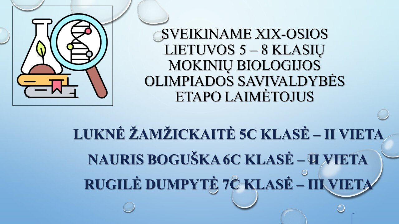 Sveikiname XIX-osios Lietuvos 5 – 8 klasių mokinių biologijos olimpiados savivaldybės etapo laimėtojus