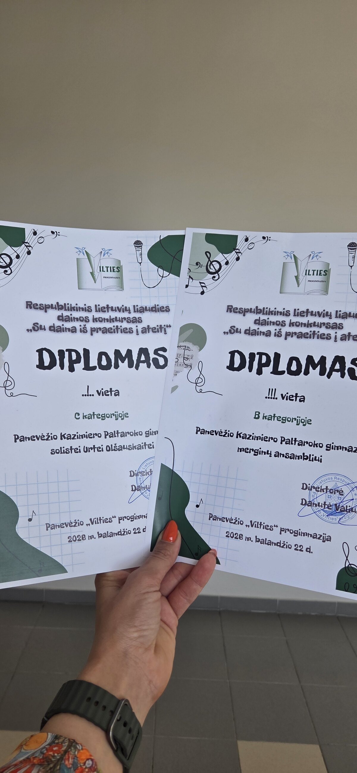 Panevėžio Kazimiero Paltaroko gimnazijos mokiniai dalyvavo respublikiniame lietuvių liaudies dainos konkurse „Su daina iš praeities į ateitį“, vykusiame Panevėžio „Vilties“ progimnazijoje. Renginys subūrė įvairių Lietuvos mokyklų jaunuosius atlikėjus, puoselėjančius lietuvišką dainą ir sceninę kultūrą.