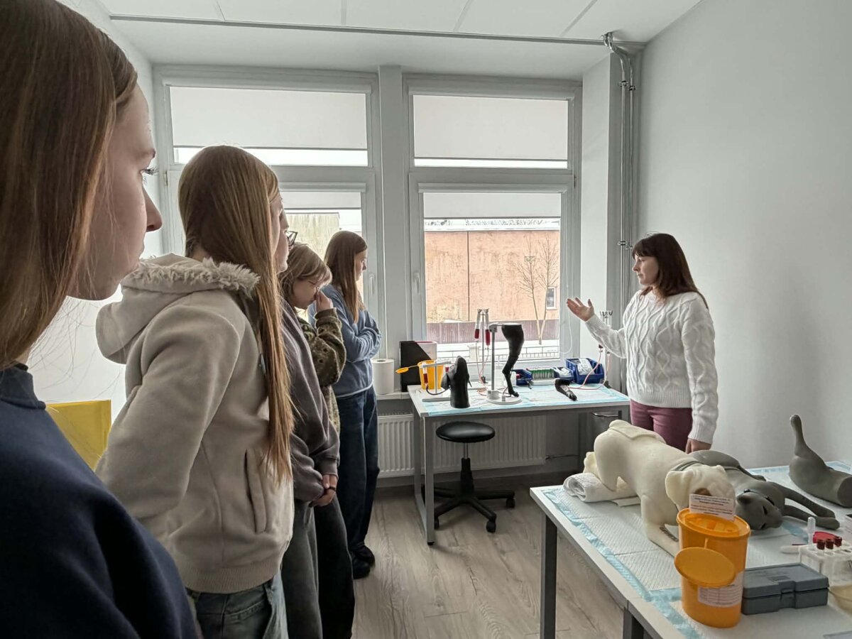Be praktinių užsiėmimų, vizito metu buvo aplankytas LSMU Veterinarijos fakulteto Simuliacijos centras. Čia mokiniams pristatytos modernios mokymo technologijos ir simuliacinės priemonės, leidžiančios studentams tobulinti praktinius įgūdžius realias situacijas imituojančioje, saugioje aplinkoje. Simuliacijos centro veikla atskleidė, kaip inovatyvūs sprendimai padeda užtikrinti aukštą veterinarijos studijų kokybę ir pasirengimą profesinei veiklai.