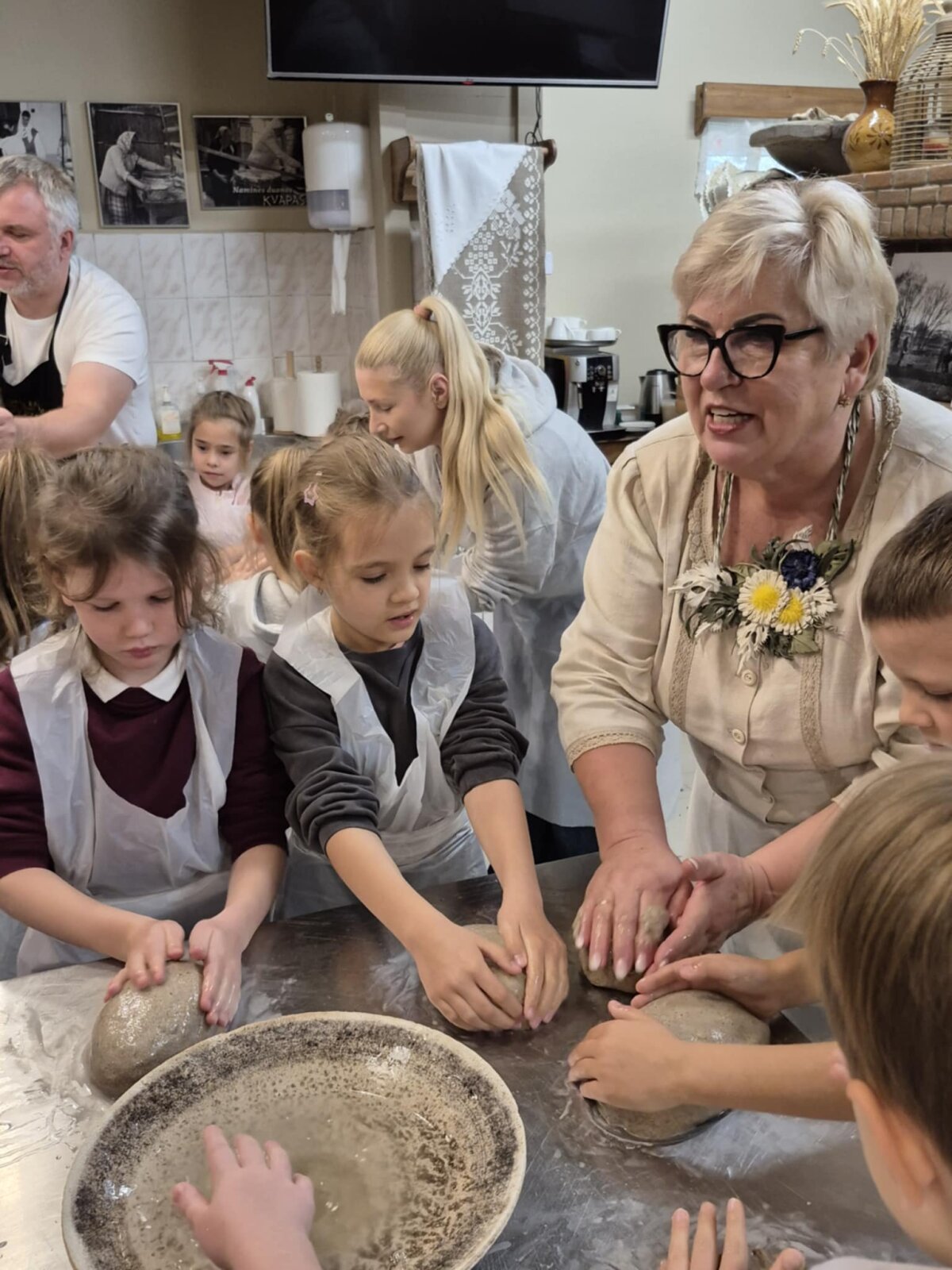 Spalio 6 dieną 1b klasės mokiniai vyko į Panevėžio rajone Radviliškių kaime įsikūrusią duonos kepyklą. Kepant duoną, vaikai prisilietė prie tradicijų, pamatė banguojanti rugių lauką, suprato sunkų artojo darbą, duonai kepti kūrenamos krosnies karštį, kepalą žegnojančios Motinos jaudulį. Kepyklos šeimininkės Audronės rengiama edukacinė programa supažindino vaikus su duonos kelione nuo duonkubilio iki stalo. Kiekvienas vaikas išsikepė savo kepaliuką.