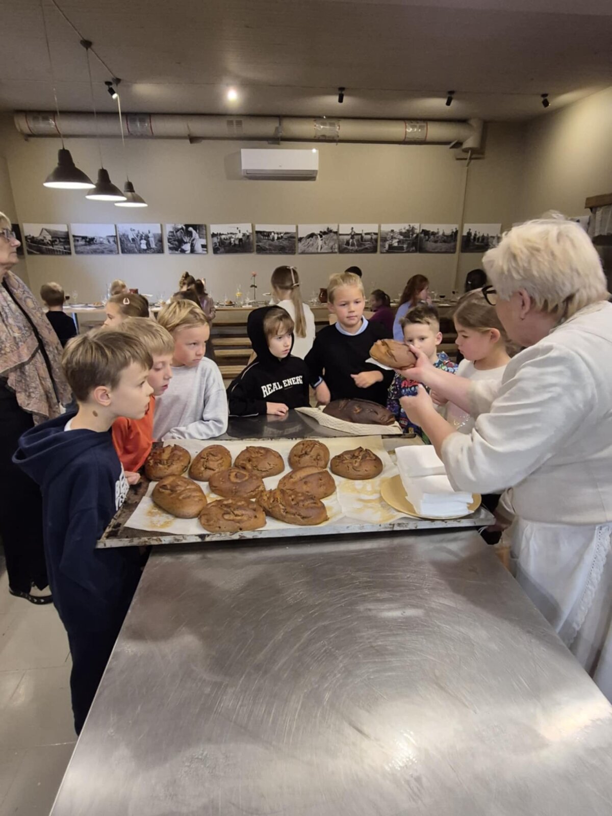 Kol kepė duona, vaikai susipažino su ilgu duonos keliu, pavaizduotu sodyboje pastatytame skulptūrų ansamblyje, vaizduojančiame visus darbus kol duonelė pasiekia stalą, išgirdo apie tikėjimą magiškąja duonos galia, lemiančia derlių, žmogaus, šeimos gyvenimą.
