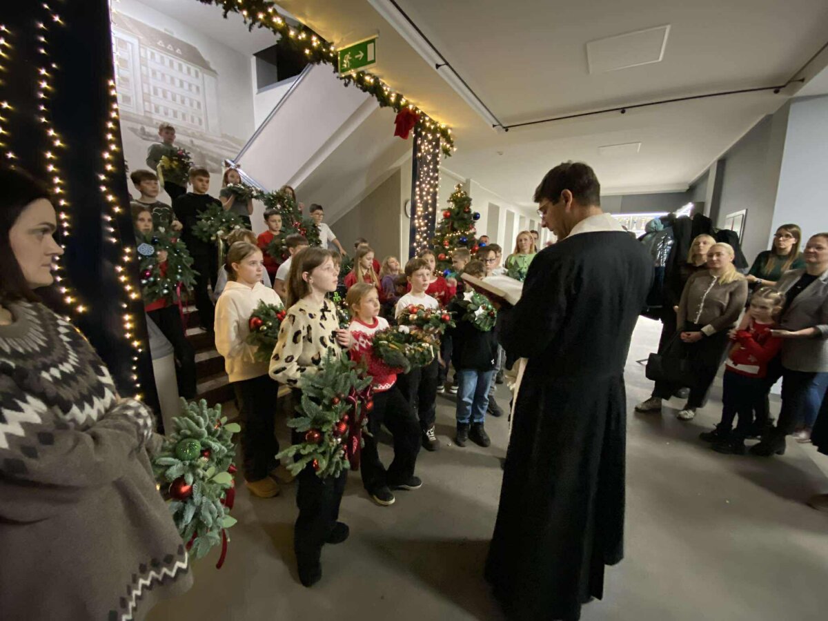 Gruodžio 15 dieną 4a klasės mokiniai ir jų tėveliai rinkosi į gimnaziją pinti advento vainikų. Netrūko susikaupimo, kūrybinio džiaugsmo, juoko. Labai džiaugėmės gimnazijos kapeliono Marcos bendryste. Nuoširdus ačiū kapelionui už šiltą žodį, nuoširdžią maldą ir laiką praleistą kartu.