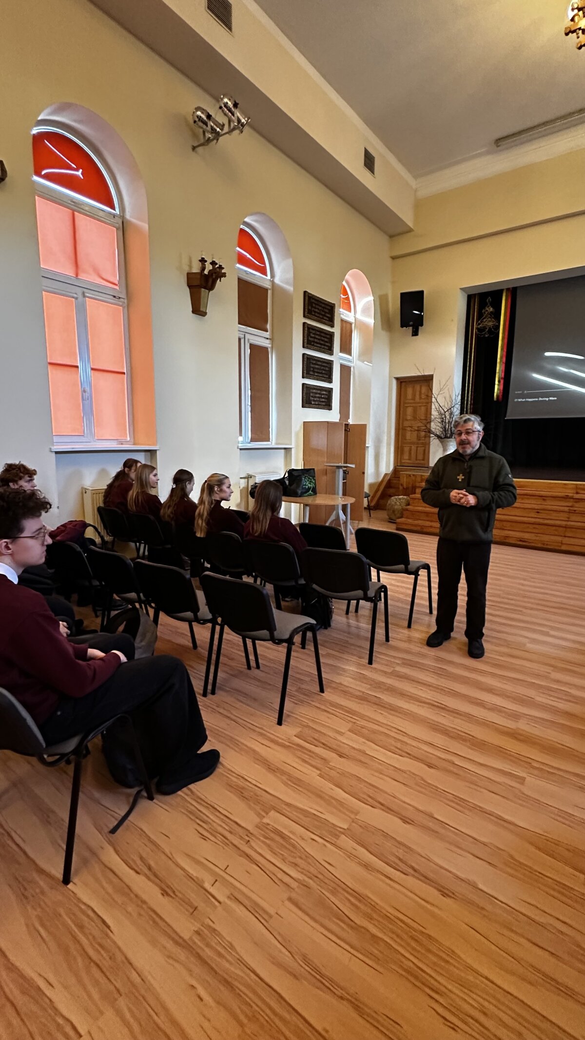 Kovo 4d. mums, vienuoliktokams, teko garbė susitikti su kunigu saleziečiumi Aleksandru Bareliu (Alessandro Barelli). Jis papasakojo apie tai, kaip devyniasdešimtaisiais lankėsi Lietuvoje, o vieną dieną jam buvo pasiūlyta čia pasilikti. Jis sutiko ir Lietuvoje gyvena jau beveik tris dešimtmečius. Kunigas teigė norėjęs atrasti tikėjimą, todėl pasirinko tapti saleziečiumi- vienuolijos, kuriai jaunimas yra prioritetas, nariu. Jis taip pat pasakojo apie stebuklus, o mane labiausiai nustebino tai, kad jis stebuklus įžvelgia paprastuose dalykuose. Atėjęs į gimnaziją, aplinkinių veiksmus įvardijo kaip stebuklus, nutiesusius jam greitkelį į mūsų aktų salę.